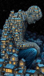 Но, муж уже выскочил из дома и пробираясь сквозь плотный слой песка, нависший над страной, — упорно двигался в направлении леса… Там он научился успокаивать нервы!